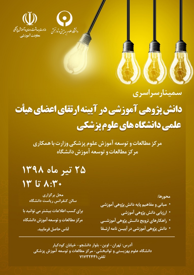 سمینار سراسری دانش پژوهی آموزشی در آیینه ارتقای اعضای هیات علمی دانشگاه های علوم پزشکی
