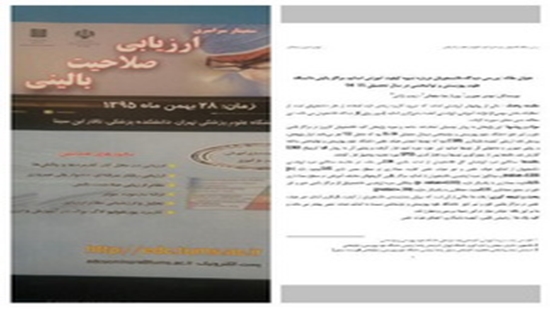 شرکت کارشناسان واحد ارزشیابی در سمینار ارزشیابی سراسری دانشگاههای علوم پزشکی و پذیرفته شدن مقاله در قالب پوستر با عنوان بررسی دیدگاه دانشجویان درباره شیوه کیفیت آموزش اساتید مراکز بالینی دانشگاه علوم بهزیستی و توانبخشی در سال تحصیلی 94-95 که با حضور جناب آقای مهدی نصیری و خانم زینب رازانی صورت گرفت .لازم بذکر است محور های همایش با موضوع ارزیابی صلاحیت های بالینی انجام گرفت .