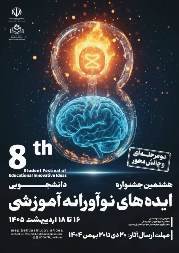هشتمین جشنواره دانشجویی ایده های نوآورانه آموزشی در سال 1405 و همزمان با همایش کشوری آموزش علوم پزشکی و جشنواره شهید مطهری در سال 1405 برگزار خواهد شد.